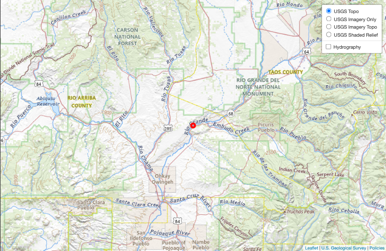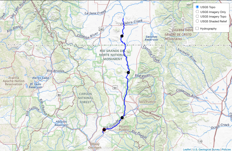 ## [3] "The NLDI ID for: RIO GRANDE BLW TAOS JUNCTION BRIDGE NEAR TAOS, NM is USGS-08276500"